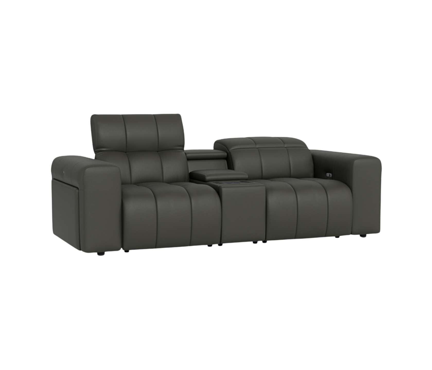 The central media console enhances convenience with built-in LED reading lights, hidden storage, stainless steel cup holders, and wireless charging for your devices — including your phone, AirPods, and smartwatch. Crafted in soft, durable leather, the Durham offers a seamless blend of style, innovation, and everyday practicality, redefining home comfort for the modern lifestyle.