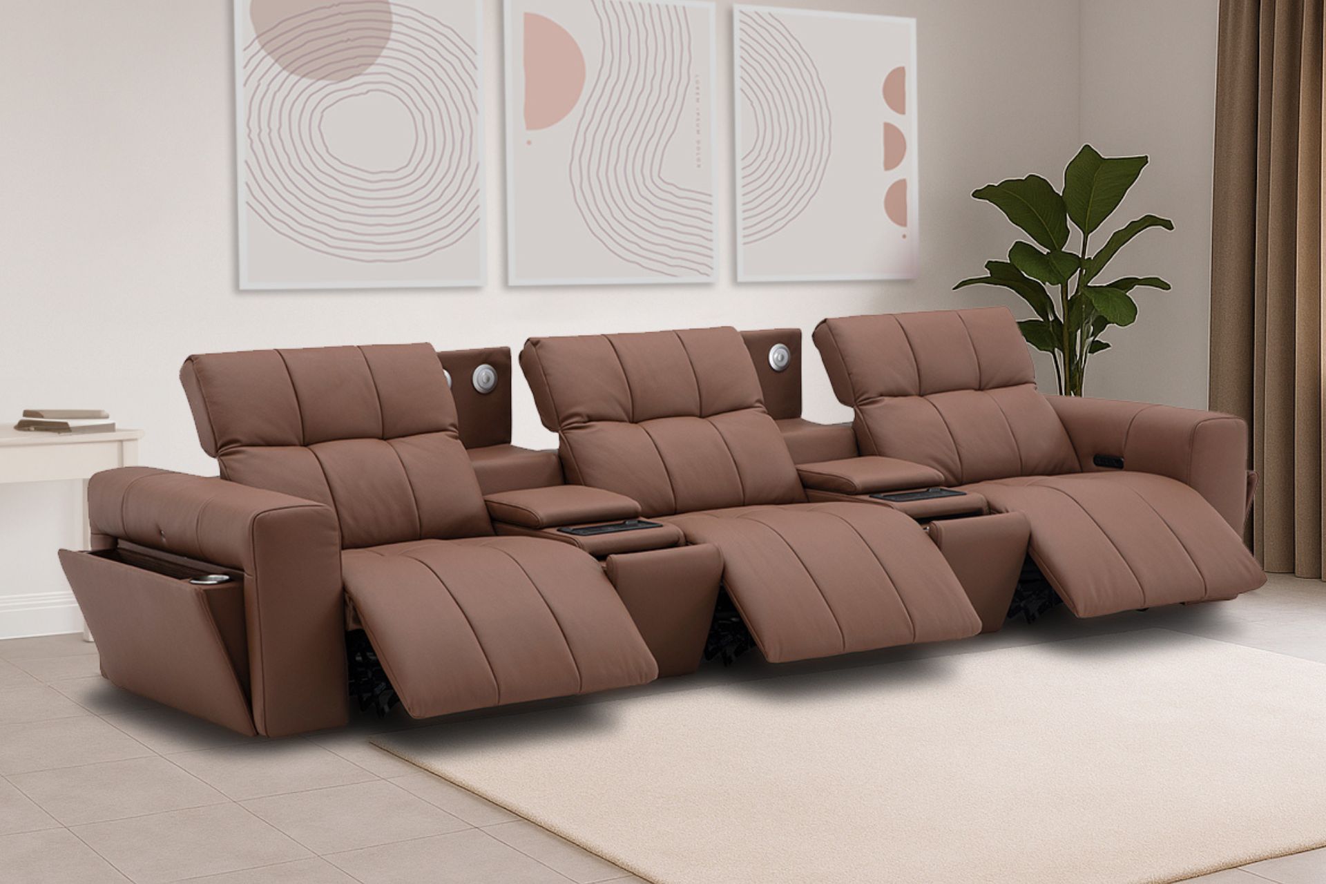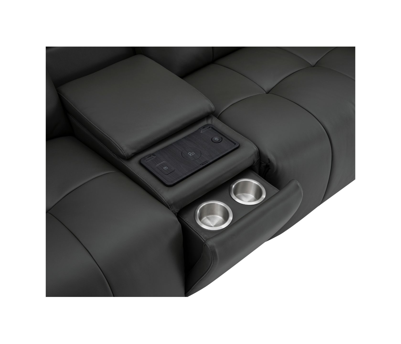The integrated media console features LED reading lights, hidden storage, stainless steel cup holders, and wireless charging for your favourite devices — from phones to AirPods and smartwatches. Upholstered in soft, durable leather, the Durham blends luxury and practicality, offering modular flexibility and smart comfort that perfectly fits today’s modern lifestyle.